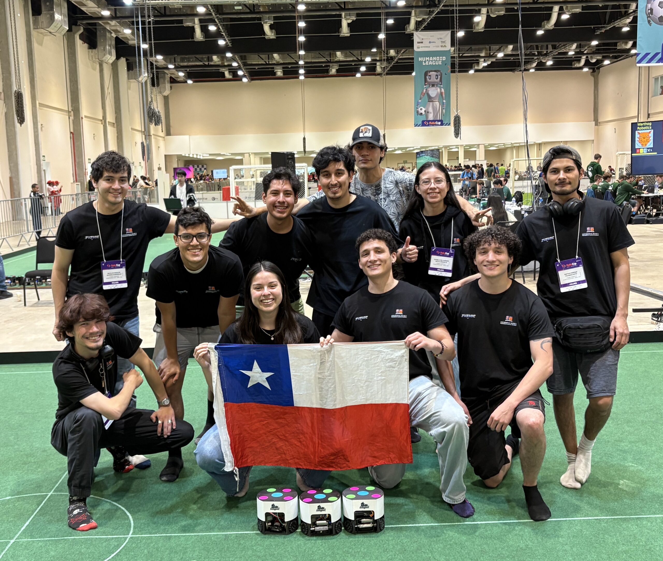 La delegación compitió en la liga SCL del certamen conformada por dos equipos. En dicha instancia, los jóvenes de la USM pusieron en marcha esta tecnología robótica dotada de visión por computador, control en tiempo real y algoritmos de IA, para la toma de decisiones en el campo de juego. Todo diseñado y construido por los estudiantes, desde la electrónica hasta la estrategia., dejando de manifiesto sus conocimientos y habilidades.