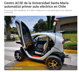 El Centro Avanzado de Ingeniería Eléctrica y Electrónica (AC3E) de la Universidad Técnica Federico Santa María, automatizó el primer vehículo eléctrico en Chile, iniciativa que fue