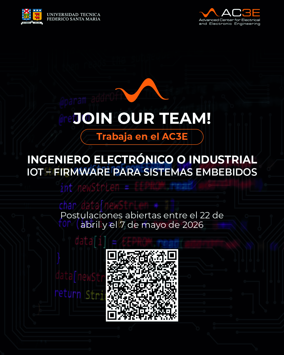 El Centro Avanzado de Ingeniería Eléctrica y Electrónica, AC3E, de la Universidad Técnica Federico Santa María, es un centro de investigación aplicada que cuenta con el apoyo de la Subdirección de Centros e Investigación Asociativa de la Agencia Nacional de Investigación y Desarrollo, ANID.